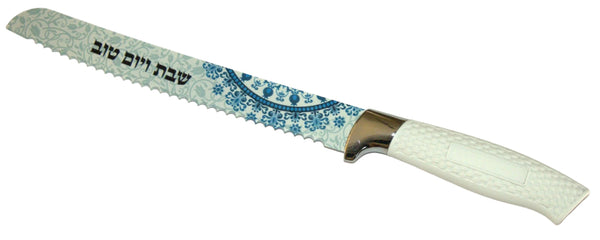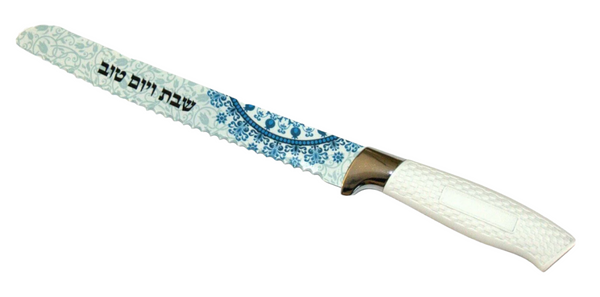 Judaica Challah Knife Floral Pomegranate Blue Print Shabbat Holiday