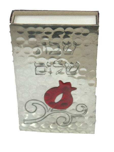 Judaica Shabbat Holiday Match Box Holder Hammered Aluminum w Long Matches
