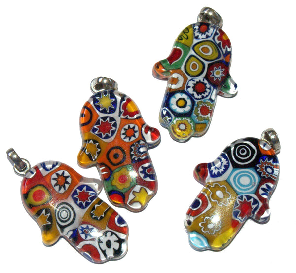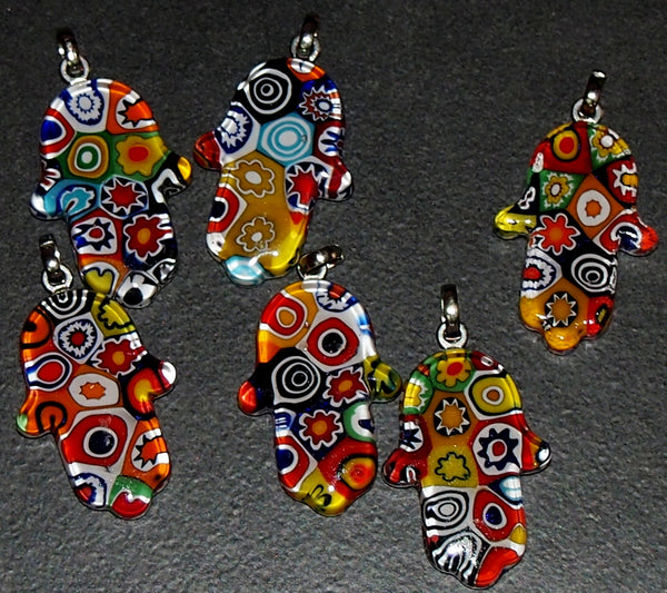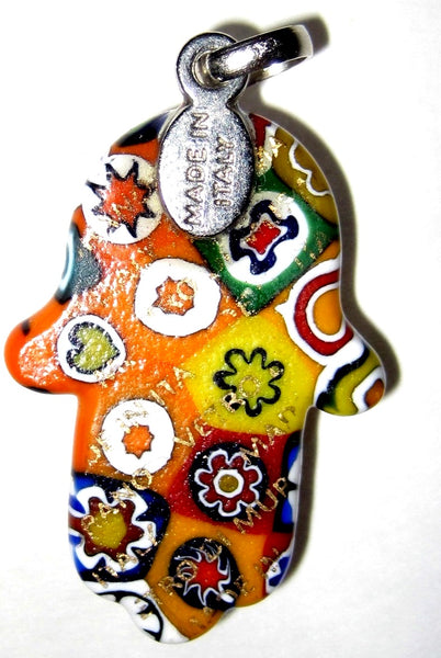 Murano Glass Handmade Hamsa Pendant Amulet Good Luck Charm Judaica Murina Italy